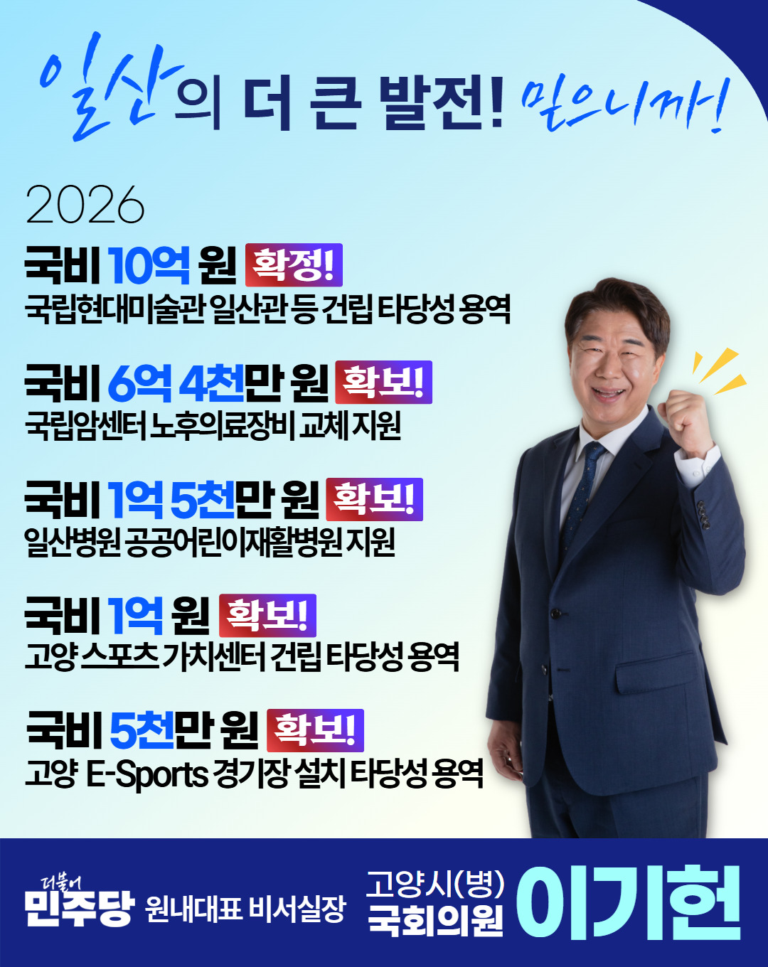 고양 · 일산의 더 큰 도약을 위한 2026년 국비 예산이 확정·확보 됐습니다!