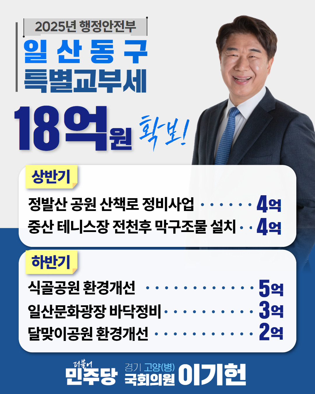 🔶 2025년 행정안전부 일산동구 특별교부세 18억 원 확보!