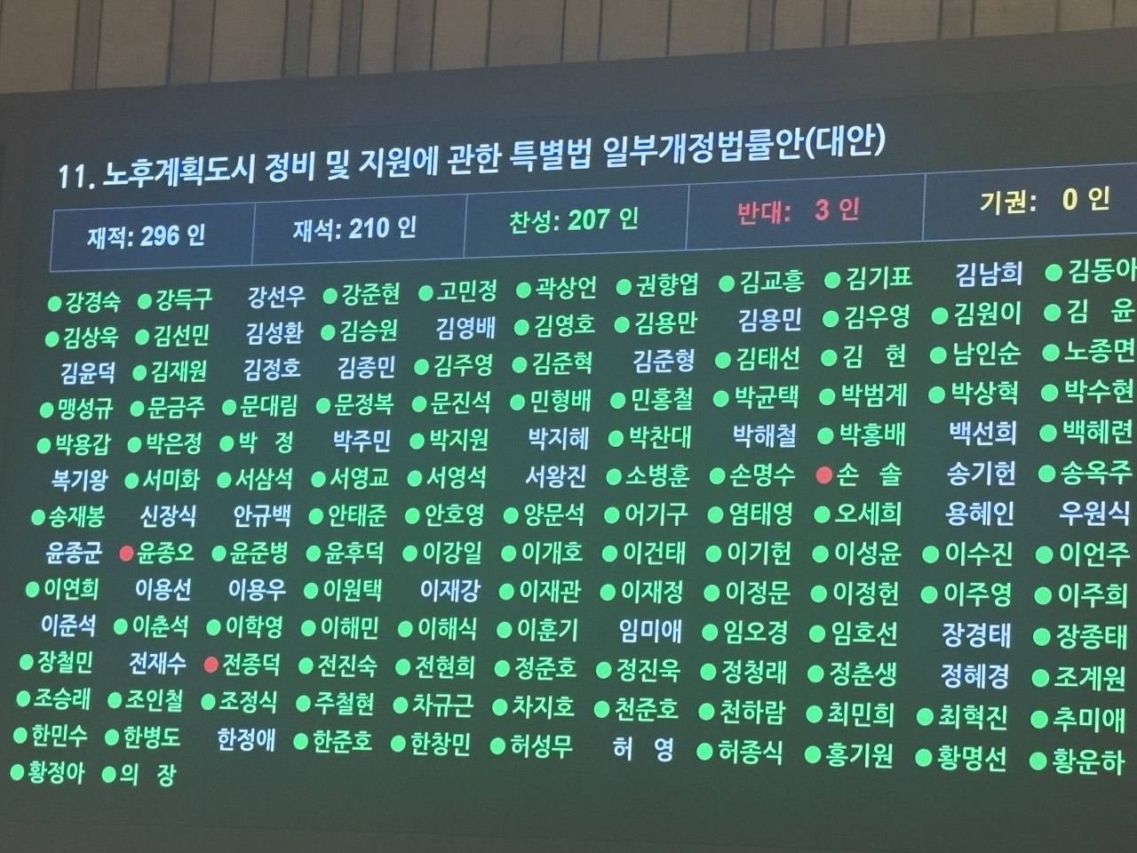 오늘 국회에서 <노후계획도시 정비 및 지원에 관한 특별법 일부개정법률안>이 통과되었습니다.
