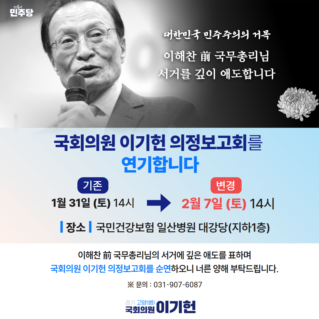이에 따라 1월 31일(토)에 예정되어 있던 의정보고회를 2월 7일(토) 14시로 연기하게 되었습니다.