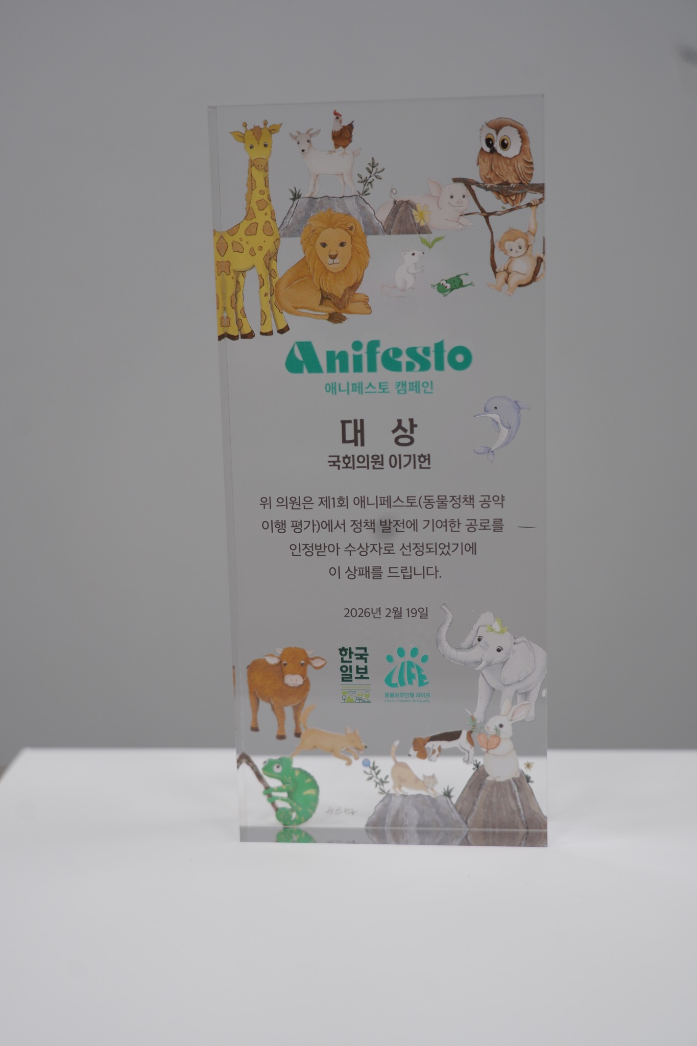 [한국일보 × 동물보호단체 라이프 ‘애니페스토 대상’ 수상]