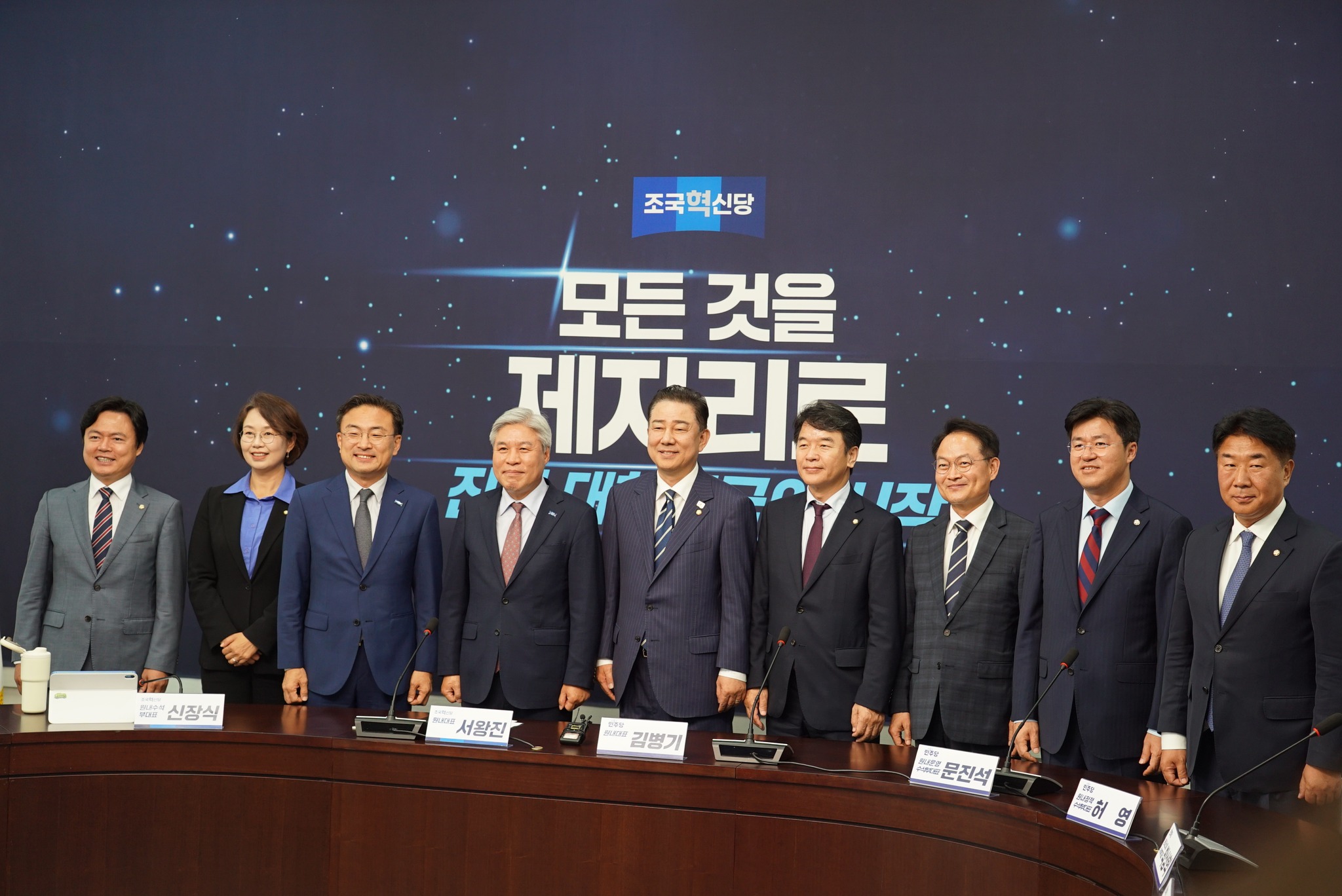오늘 더불어민주당 원내대표단은 국민의힘 서왕진 원내대표와 조국혁신당 서왕진 원내대표를 각각 예방하고, 강훈식 대통령실 비서실장과 우상호 정무수석을 접견했습니다.