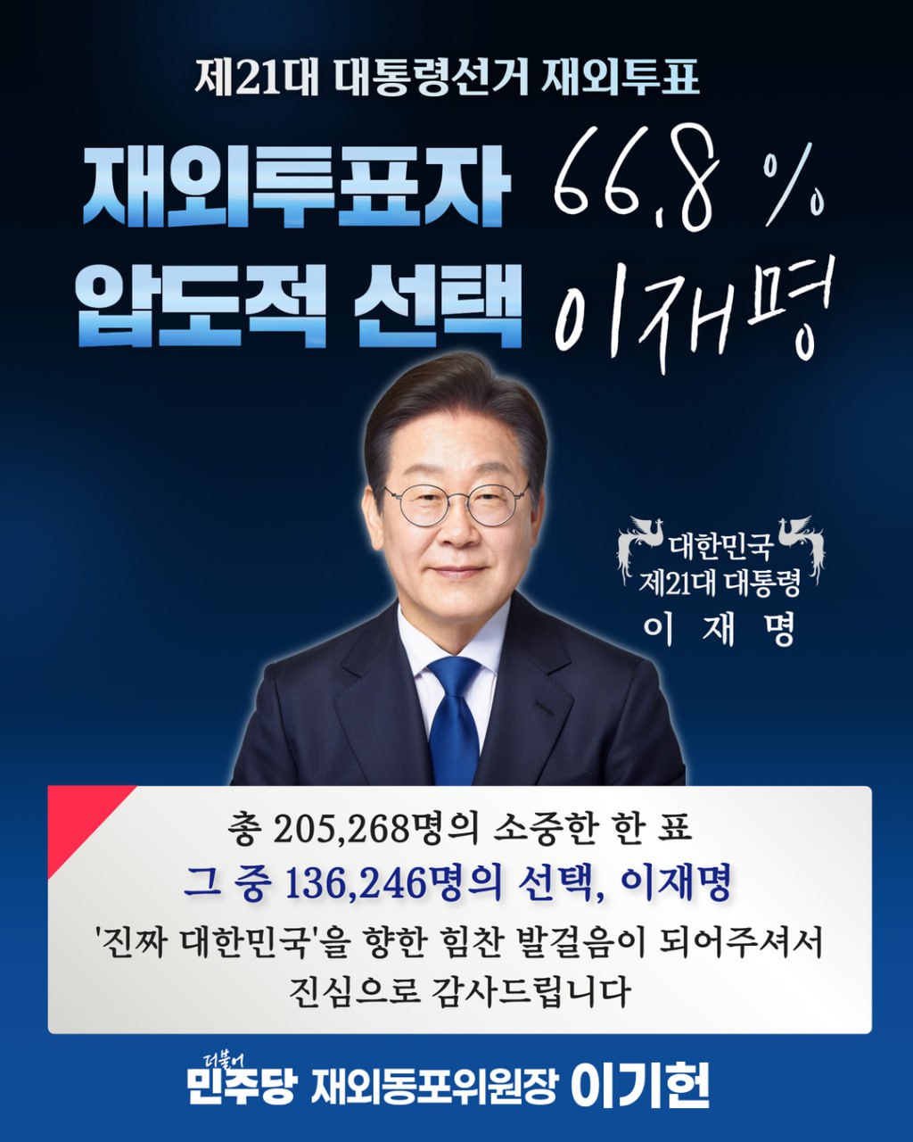 [재외투표자 66.8% 압도적 선택 이재명!]