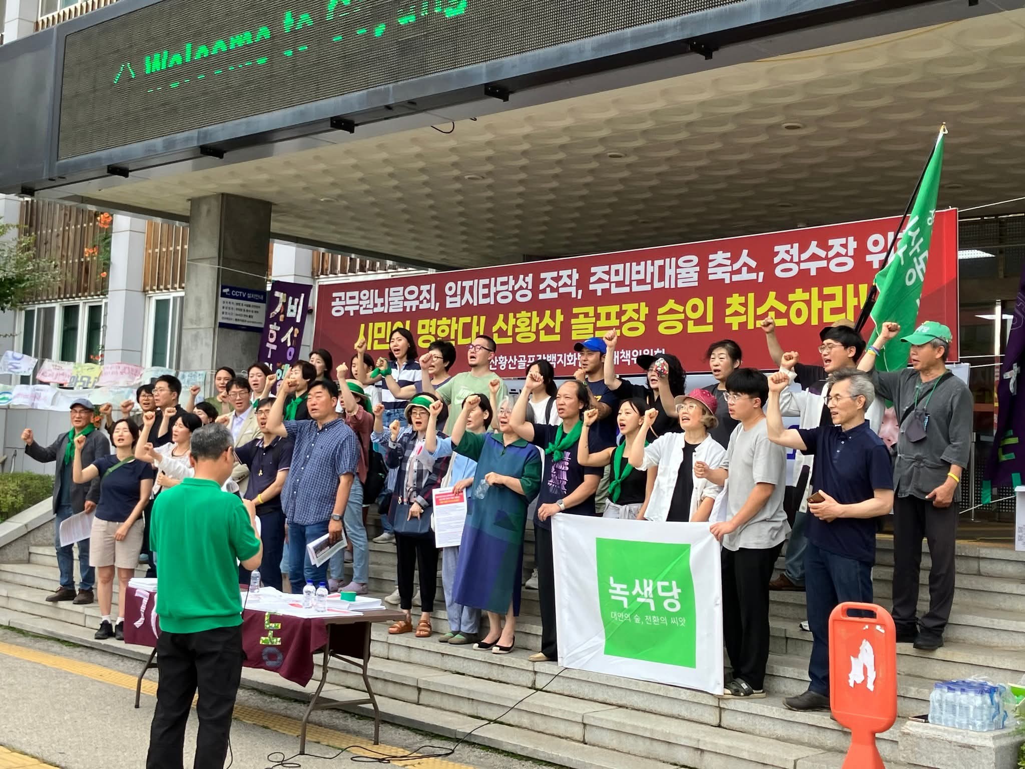 지난 6월 17일, 산황동 골프장 증설 실시계획 인가를 내준 이동환 고양시장을 규탄하는 기자회견이 며칠 전 고양시청 본관 앞에서 있었습니다.