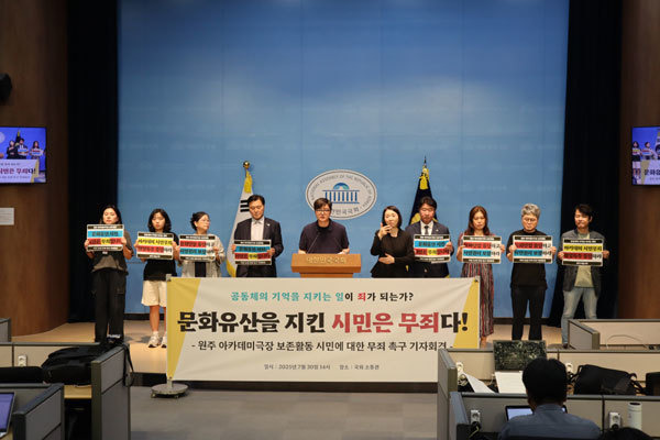 마지막으로 참석자들은 원강수 시장에게 시민 고발이라는 비민주적 행태를 즉각 중단하고, 갈등을 대화와 협력을 통해 해결할 것을 촉구했다. 문화유산을 지키려 했던 시민이 범죄자로 내몰리지 않도록 지금의 상황을 바로잡아야 한다는 요구가 이어졌으며, 문화예술인들은 이번 사안을 끝까지 주시하며 시민과 연대해 나가겠다는 입장을 밝혔다. 현재 시민 24인에 대한 무죄를 요구하는 온라인 탄원은 개인 3,000여 명, 원주를 비롯한 전국의 130여 개 단체가 연명에 참여하였다.