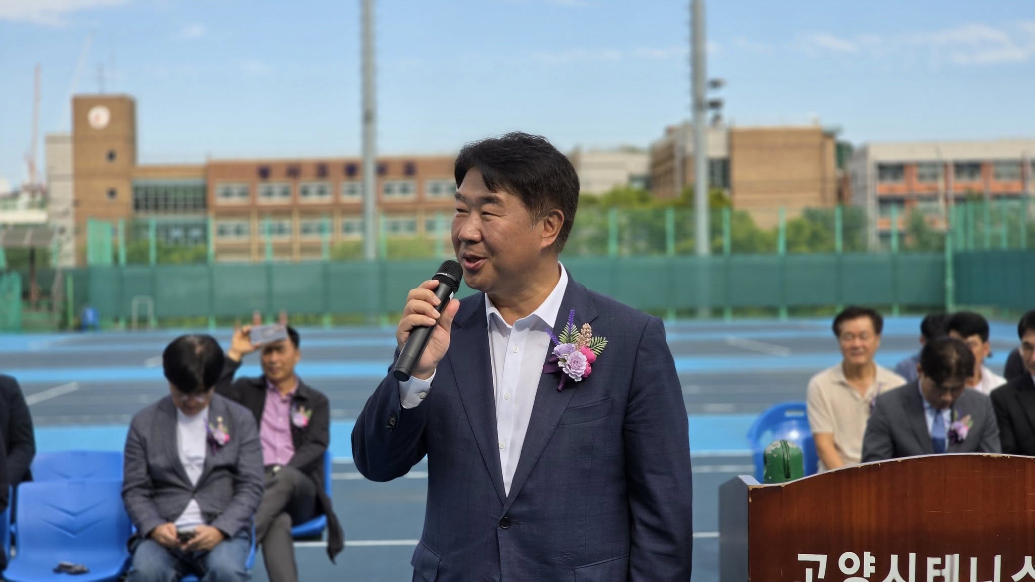 2025년 제33회 고양특례시 생활체육협회장기 테니스대회가 열리고 있는 성사테니스 코트에 참석했습니다.